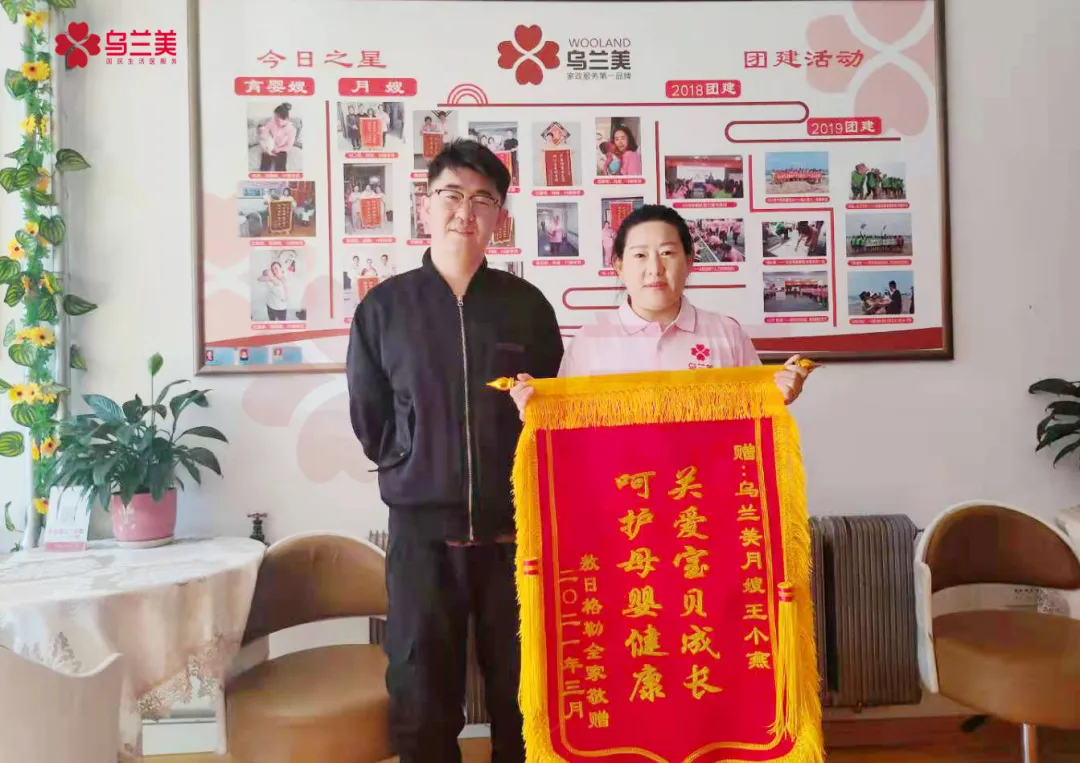 近日,烏蘭美母嬰服務(wù)中心迎來了一位高大帥氣的寶爸,專程來到中心感謝烏蘭美育嬰嫂王小燕,并對王小燕贊不絕口!”在王姐入戶的一個多月里,她表現(xiàn)非常好。不僅懂得專業(yè)的月子餐制作,更是對營養(yǎng)知識了若指掌。“二胎媽媽說道:”同時,在育嬰方面更是面面俱到,包括給小寶寶日常清潔護理、洗澡、撫觸以及好習(xí)慣的培養(yǎng)等,她都事無巨細“。