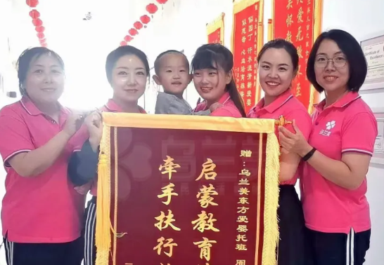 近期,烏蘭美早教中心托班王浩然小朋友的媽媽,為表達(dá)烏蘭美早教中心老師們對孩子的辛勤教育和悉心照料的感激之情,將印有“啟蒙教育第一師,牽手扶行始登峰”的錦旗送到老師手中,感謝托班的周靜老師及全體老師們,更加感謝烏蘭早教中心擁有如此出色的師資隊(duì)伍。